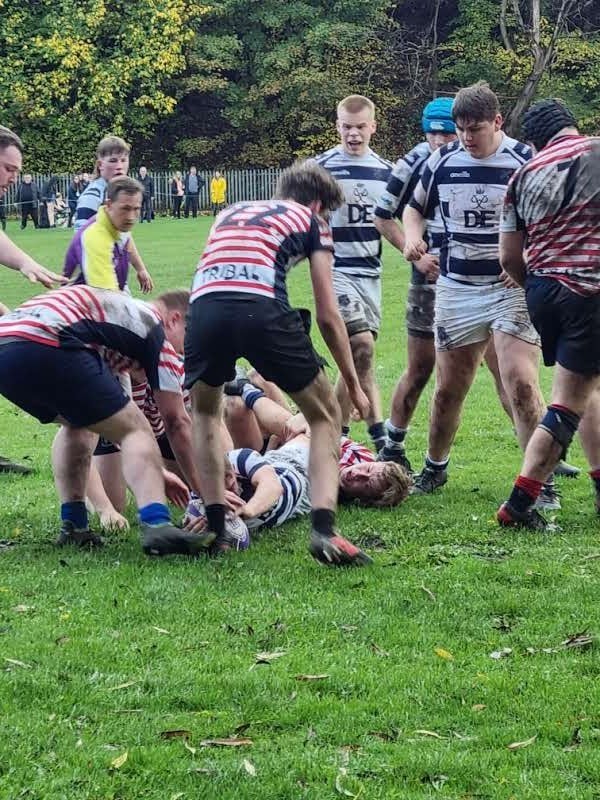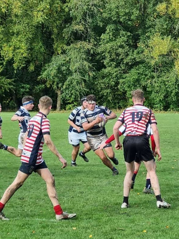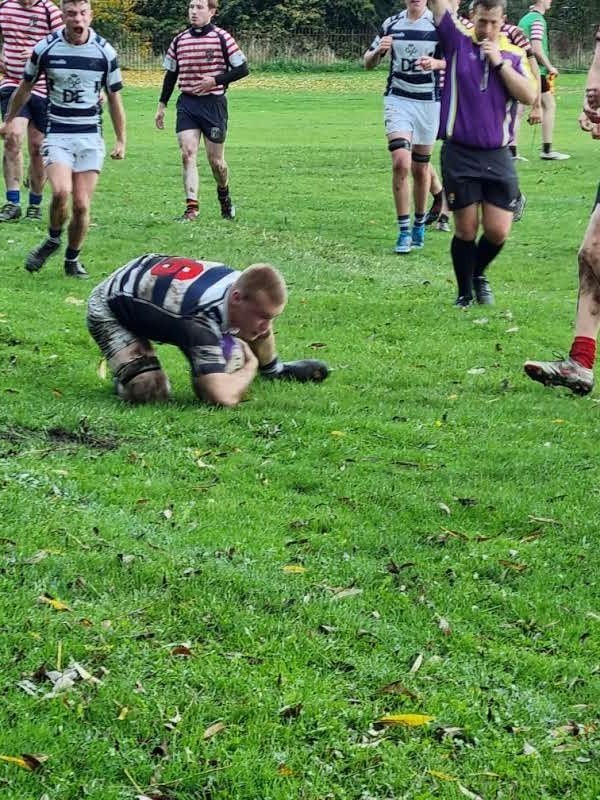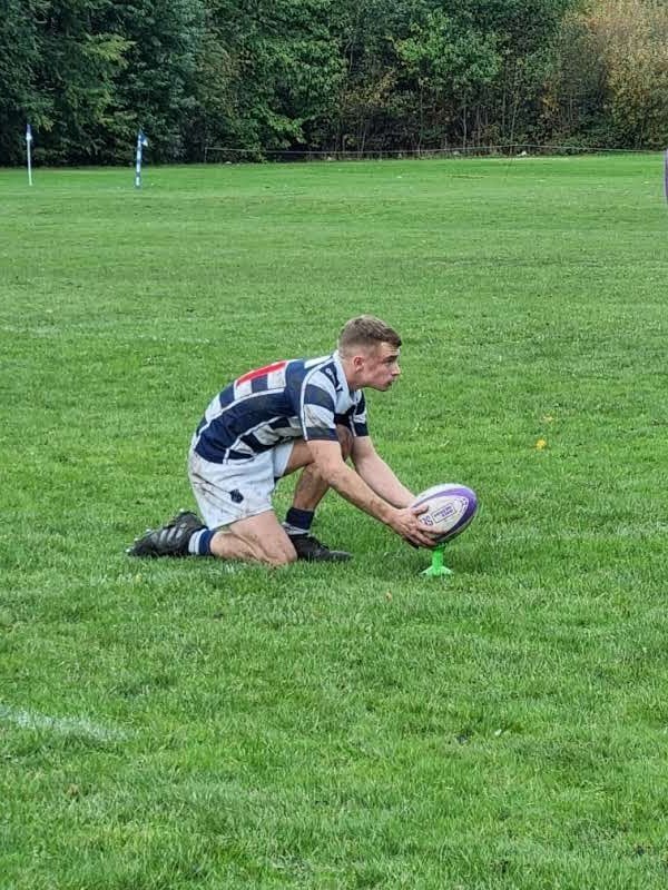 The visitors made a bright start, opening the scoring with a penalty in the third minute and succeeded in keeping Eccles contained inside their own territory for the first 10 minutes. Eccles retained possession well but when thier work rate and passing failed to provide them with a succesful break out, accurate kicking from Fly Half Leighton finally released the attack and moved the game onto the edge of Aldwinains 22. Penalites resulted in some good work from the forwards with the pack dominant in the scrum and Ollie's handling assured in the line out. Although Eccles were missing several players the flexibilty and fitness in the squad had once again proven to be a great asset when deploying forwards to positions all around the pitch. Tom K had to depart the field during the first half after suffering a broken knuckle and ligament damage to a finger and Eccles shuffled its pack moving Ollie to 8 and bringing Josh on at blindside without any loss in forward momentumn. Chayse ran some great hard lines, Leighton was doing his level best to orchestrate play but with limited options he was regularly smashed in possession, Chas made a good job of distributing the ball at stand in scrum half, Alex enjoyed a rock solid game at full back. Although Eccles were often slow to protect their own ball at the breadown and were mostly chaotic in thier play they were able to build sustained attacking pressure on Aldwinains, eventually resulting in a try from the ever persistent Alex to the right of the uprights, who claimed the extras with an assured conversion. 7-3. Just before half time Matt H, starting at centre, broke through the defensive line on the right and raced in towards the posts to score, making the conversation a little easier for Alex. HT 14-3.