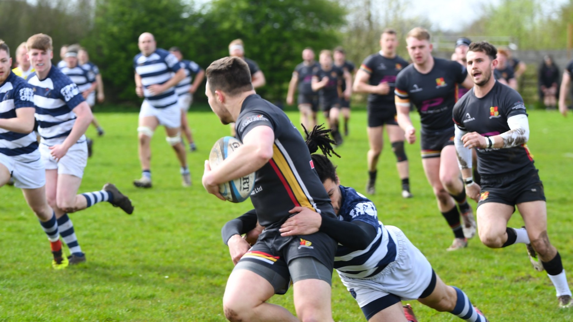 The final Lancashire & Cheshire Counties 1 fixture of the season was played out in windy conditions, with Eccles steadfastly sticking to the task of earning the bonus point win they needed against hosts Tarleton to secure their promotion to Level 6.
