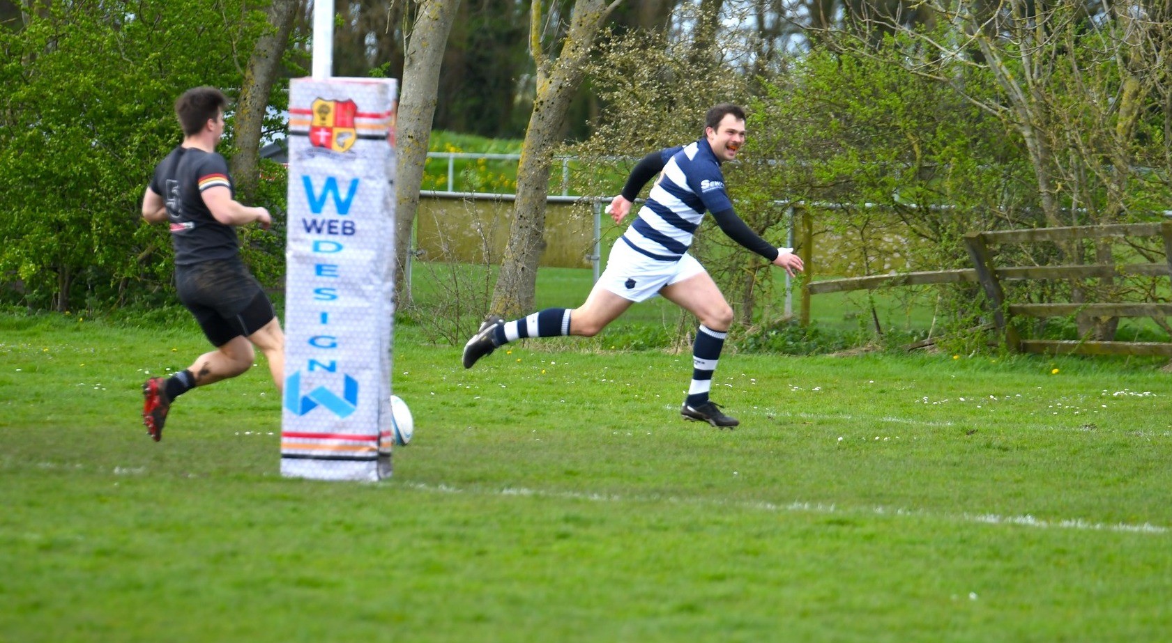 A few minutes later, the left wing was deployed in the same style, with Parkinson making the break and offloading to Fortune who weaved through the defenders and skipped inside to score in the corner. The attempted conversation from Simpson was suspended by the supernatural wind in mid air and propelled backwards behind the kicker! 53” TRY ECCLES (Fortune) 5-24.