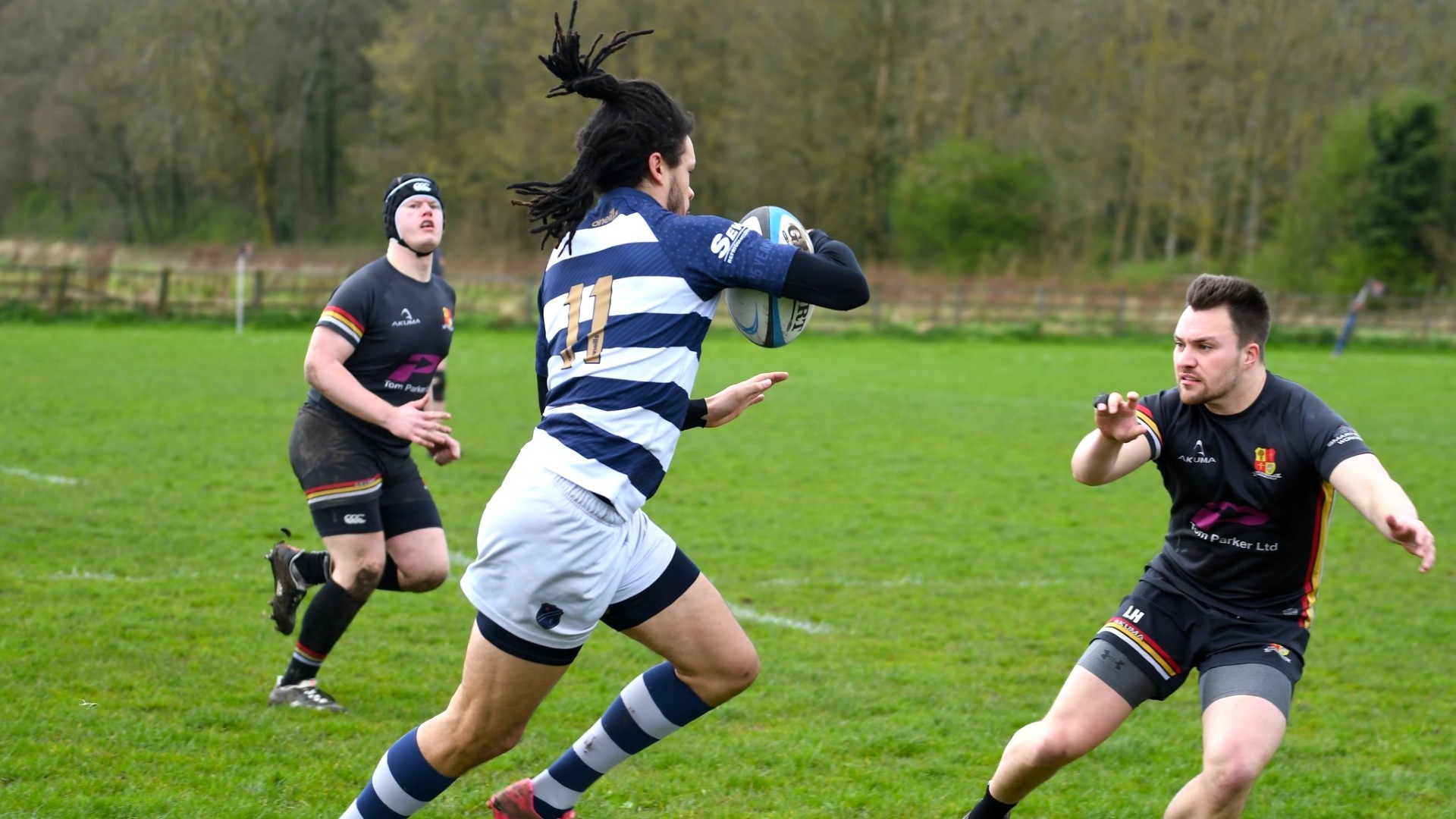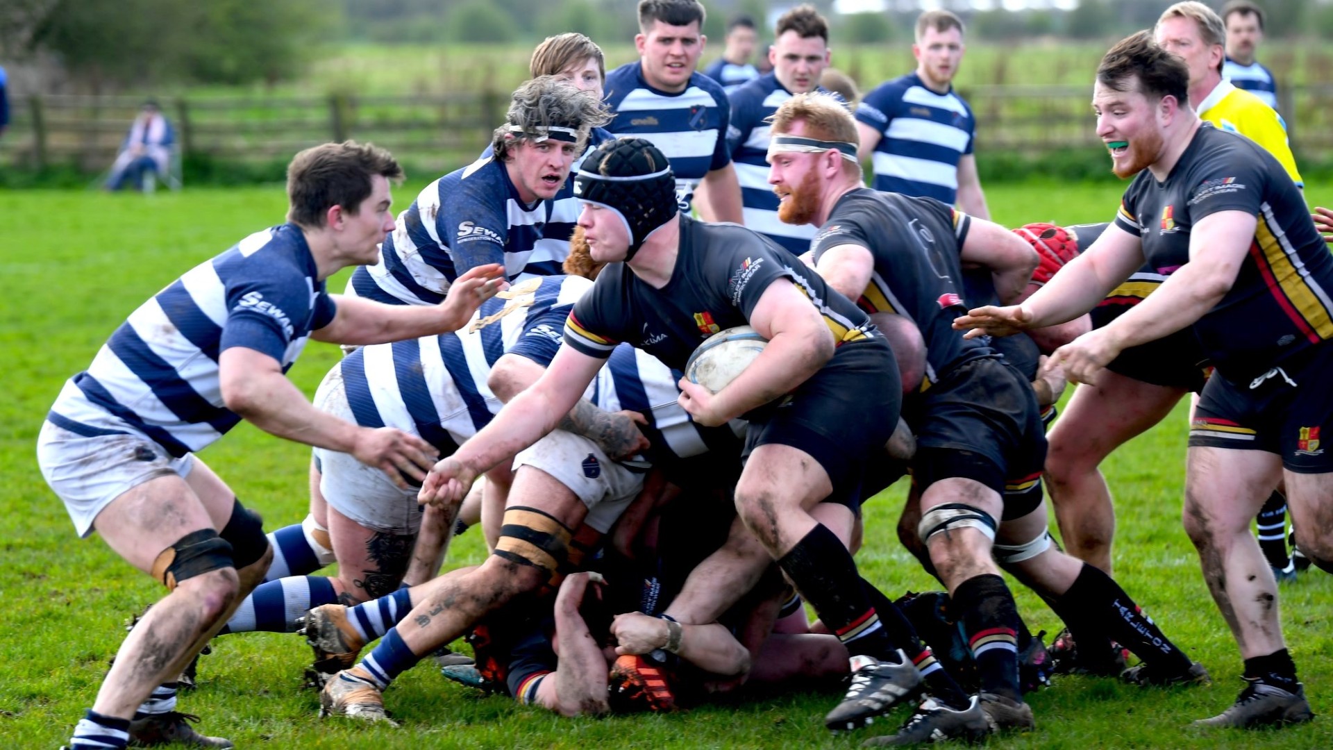 For the next 30 minutes the game hardly left the Tarleton 22. On the rare occasion the ball was cleared into Eccles territory it was swiftly punted back into Tarleton’s last quarter, with the wind assisting more than one 50/22 in Eccles' favour. Although Eccles had the greater share of possession and a multitude of opportunities to score, a combination of eagerness, handling errors and the host’s disciplined , determined defence thwarted any advancement. The challenging conditions made passing and line out throwing unpredictable and even a gentle grubber kick from Simpson was blown off the pitch chased by Ackers Johnson and Parkinson in frustrated pursuit.