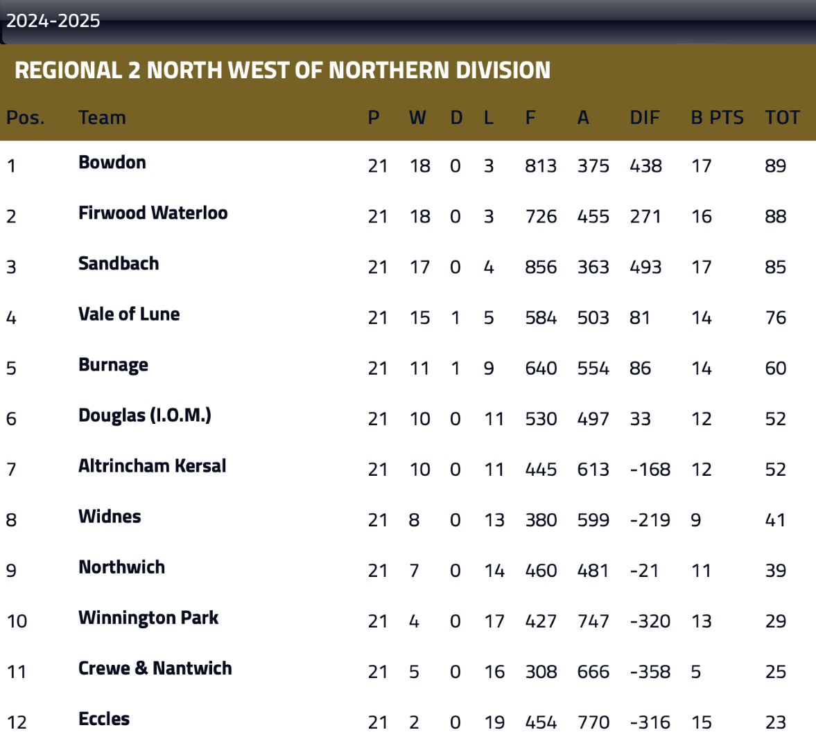 Eccles remain fixed to the bottom of the table and will complete the season away at Clay Lane when they visit league leaders Bowdon on 5th April.