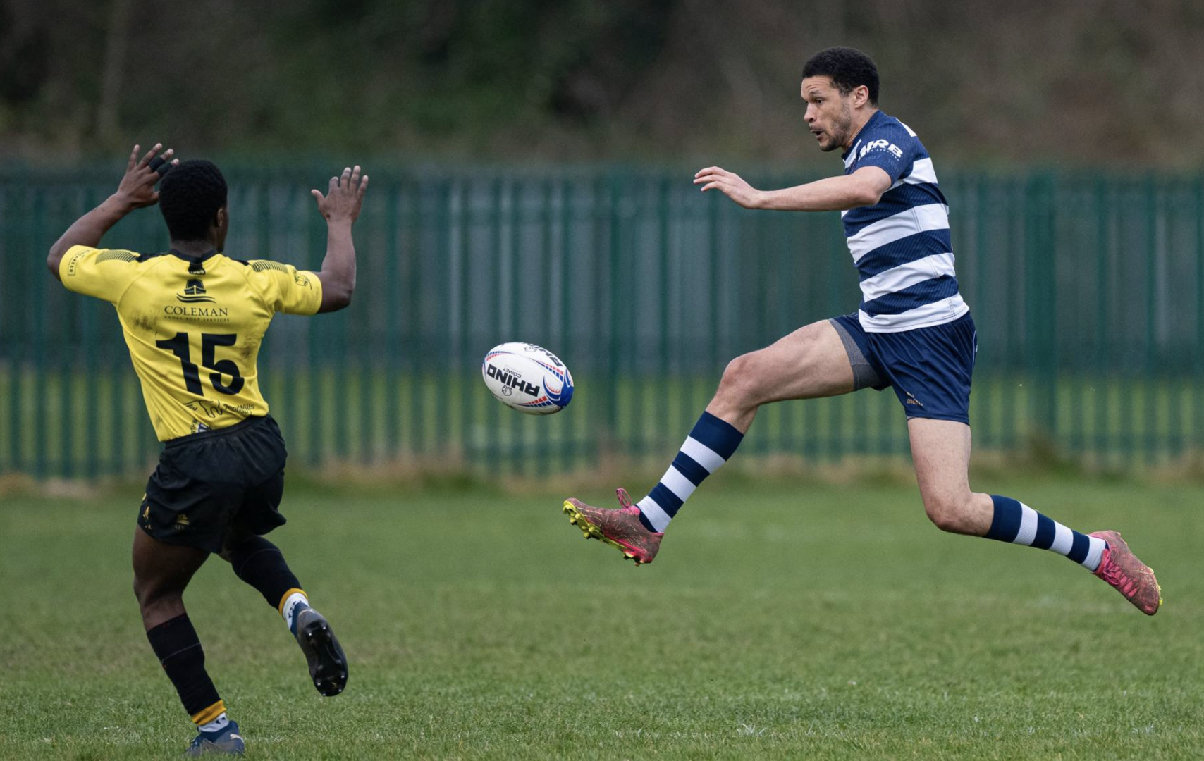 Eccles reacted to this set back by running the ball at every opportunity, putting the opposition under sustained pressure but failing to make a break through. When the ball finally reached Ackers-Johnson on the wing progress was made, leading to a promising 10m scrum for Eccles, from where the ball was fired out to the wing but knocked on. Eccles continued to enjoy the greater share of the attacking possession but became flat and predictable in their play and when Eaton’s short pass was intercepted the Northwich centre raced away 50 meters to score at the other end.