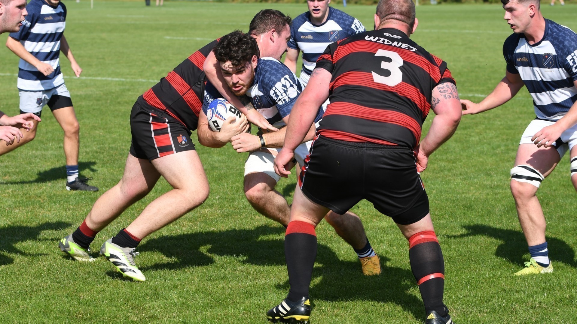 Visitors Widnes, twice-winners of the Lancashire cup and celebrating their centenary this year, began the contest enjoying the greater share of possession and keeping Eccles inside their own half for the opening minutes. Play was frantic as both teams wrestled for control. Eccles were careless with the ball and contributed to their problems with penalties which proved costly when Widnes kicked to the corner for a 15m Line Out. The ball was thrown to the back and dropped off the top into the hands of the number 8, who strolled through the yawning gap between the Eccles forwards to score from a well executed move. 12' | 0-5 | WIDNES TRY (O’Neill)