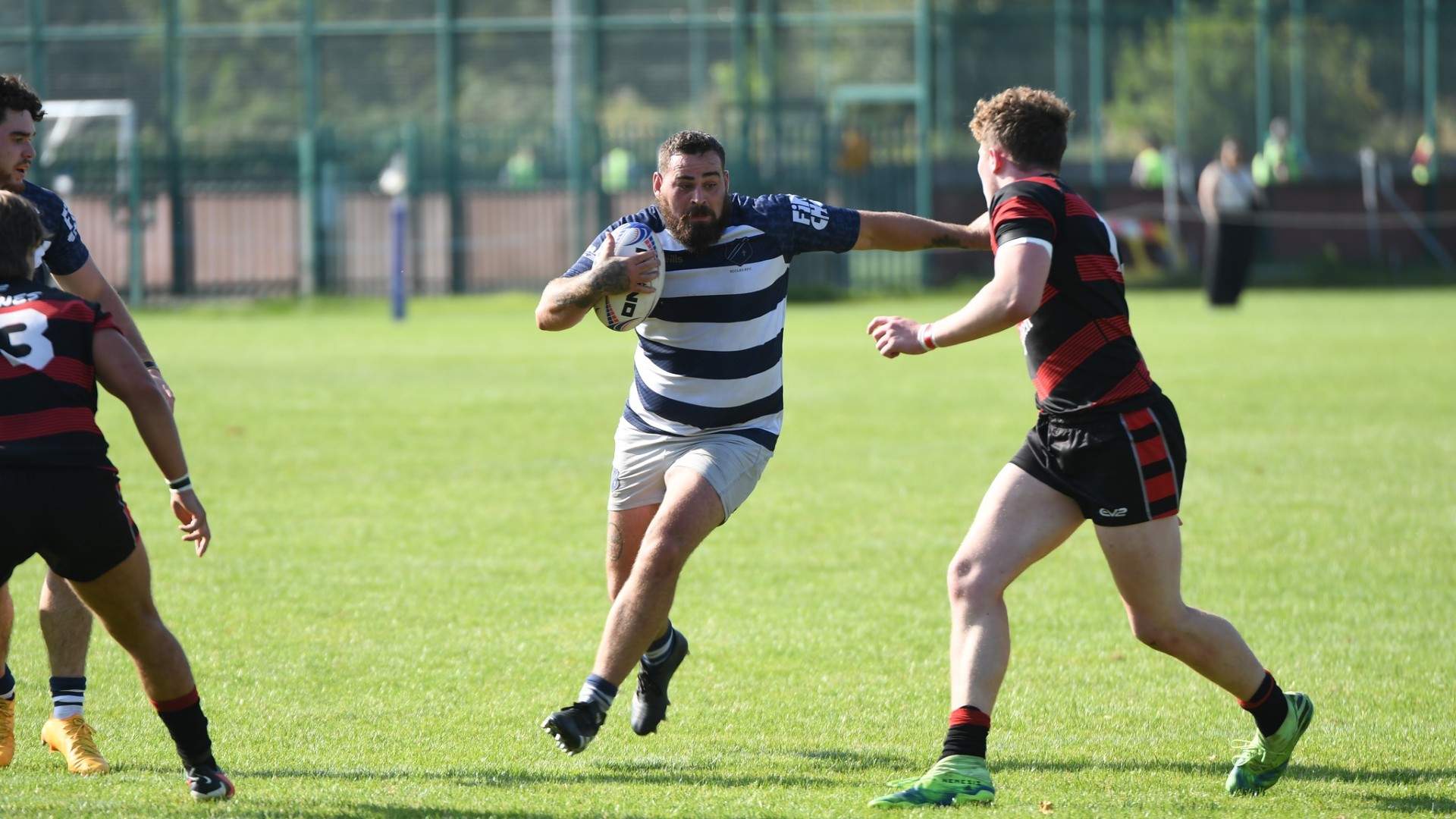 With 10 minutes remaining overcoming a ten-point deficit felt achievable for the Eccles faithful, but errors in handling squandered good attacking opportunities, allowing Widnes to steal the ball inside their 22 and break once again upfield into Eccles territory. Eccles regained possession but a catastrophe of passing between the Eccles‘ backs inside their 22 presented Widnes with a loose bouncing gift in front of the posts, which they happily accepted, scored and converted. 73' | 7-24 | WIDNES TRY (Feeley)