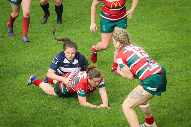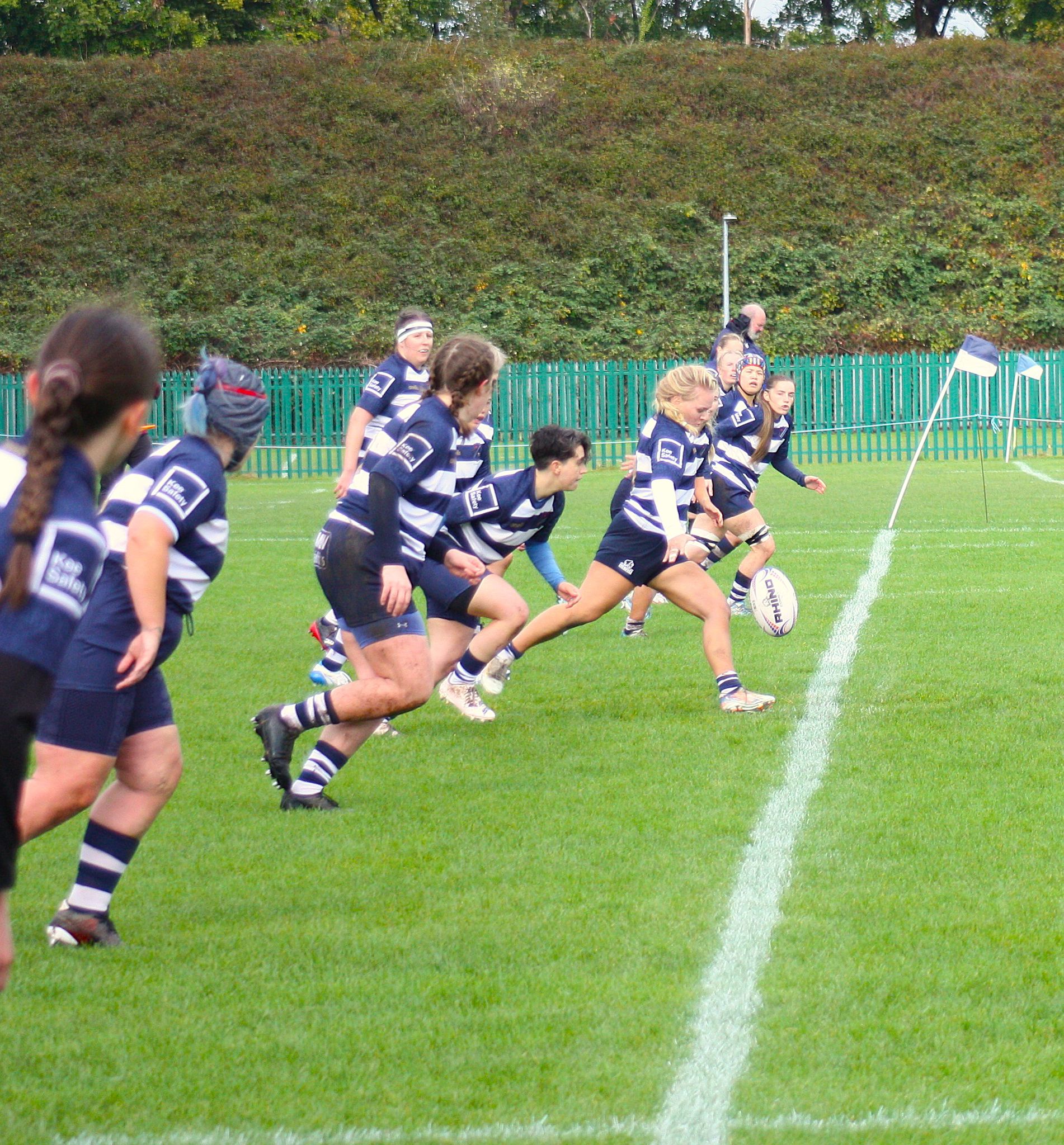 The weather conditions turned and for a biref period the game enjoyed some sunshine and with this an opportunity for Eccles to get points in the scoreboard. A strong restart kick from Lucy Whailing-Mills, put the ball deep into Lincoln’s half, Eccles applied pressure through dominant tackles to keep Lincoln in their own half. The Game continued with hard running from Lincoln met with strong defence from Eccles, but errors result in the Eccles forwards seeing more of their familiar favourite, the scrum. Although the hosts are able to stand their ground, a successful drive from the visitors sees Lincoln winning the ball back and a 2nd try is scored and converted.