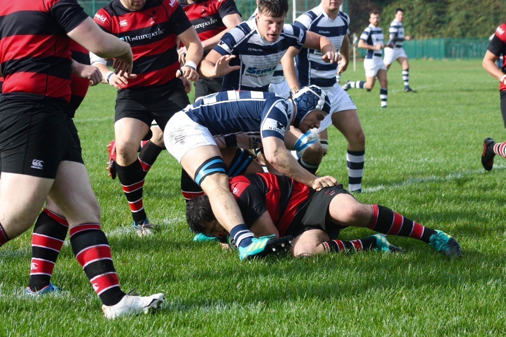 Saturday morning’s rain subsided, the grey clouds parted and the appearance of the sun as the teams took to the field brought with it the optimism and promise of a great game of rugby. Sadly, the sunshine along with sparkling moments of play was to be patchy for the rest of the afternoon.