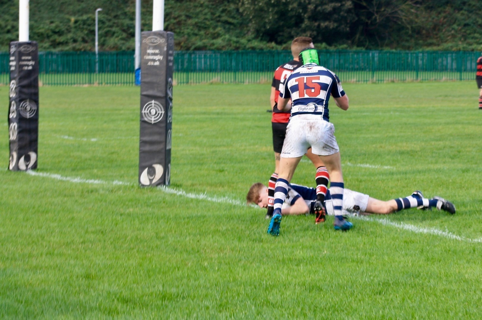 Eccles made a decent start enjoying a good possession for the opening exchanges but sloppy handling allowed the visitors to press the attack back into home territory. Eccles shifted the ball from left to right flank, fullback Harry Hutton advanced beyond the halfway line and kicked accurately over the defence to the right corner where winger Will Parkinson gave chase, beating the opposition fullback to pounce onto the rolling ball in the in-goal area for a try at 7 minutes to put Eccles ahead 5-0. The remainder of the first half was played mostly in the middle of the pitch with unforced errors being characteristic of Eccles’ performance. With quarter of an hour played, the visitors capitalised on this lack of care and urgency at the breakdown, turning over Eccles possession 10m in front of the posts and from the resulting chaos scored a try; converted 5-7. Eccles respond and following attacking pressure earn a penalty on the left which Chris Fortune slots home to retake the lead 8-7. The score remained unchanged at the break, with handling errors from both teams keeping it a close, gruelling midfield contest.