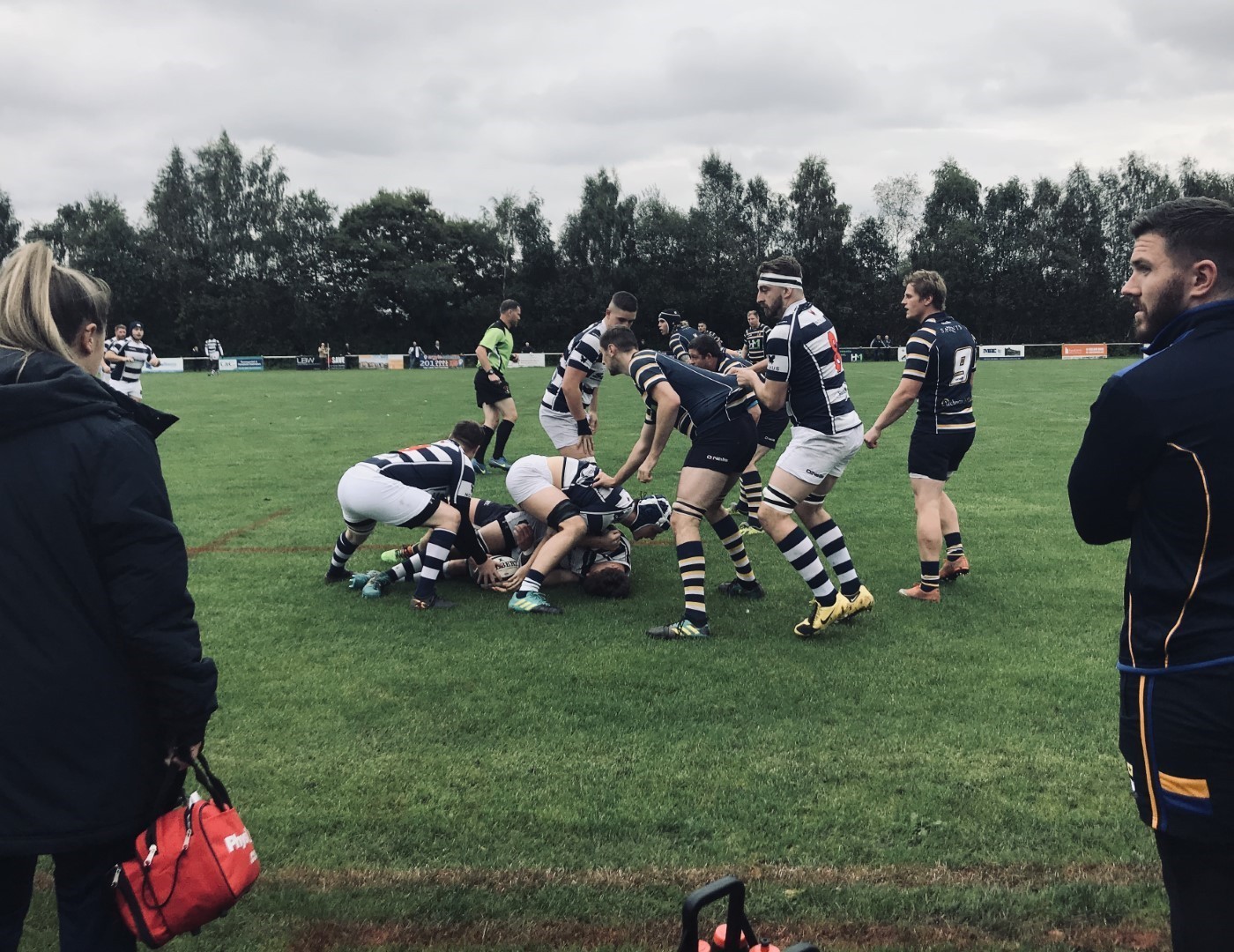 At the restart Eccles attmept to regain their shape and form to get themselves back into the game. Tony Haunschmidt replaced Lee Brennan in the back row. Eccles began lively with a couple of bursting runs from Will Parkinson. Anselmians had a man sent to the bin ( late tackle on Sam Long). Gav playing as centre (MOTM) continues to put in some great tackles and the momentum begins to shift to Eccles who look to play the game in Anselmians half but waste the opportunity of their man advantage. The line out is messy, kicks don't find touch, knock ons in contact. To add to the pain Hooker Tom Egerton’s head is split open by a boot in a tackle and as play continues at a resulting ruck, the Anslemians prop picks and goes, stepping through the bodies on the ground to slip through for an easy Try under the posts to put them 22-0 up.
