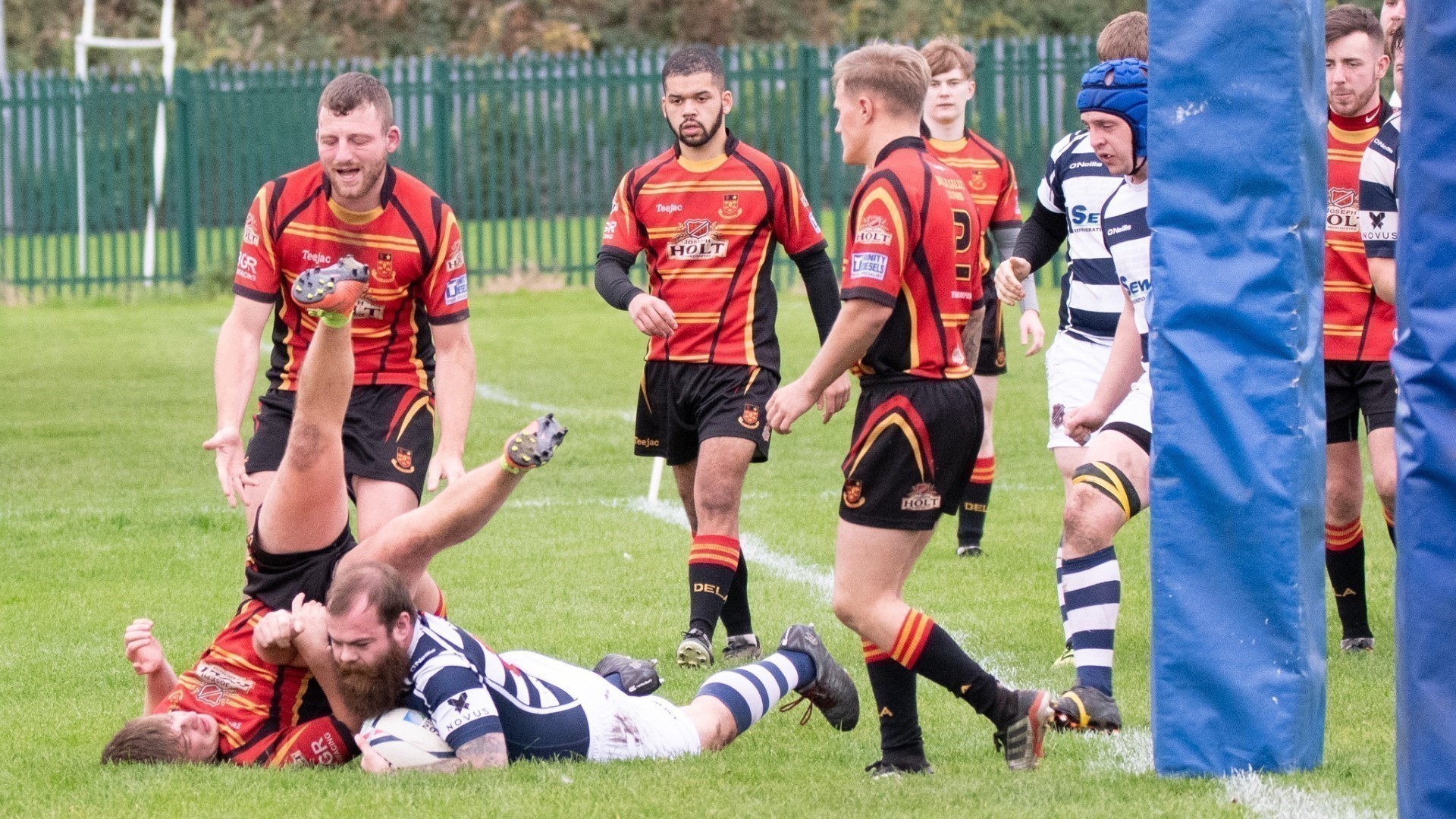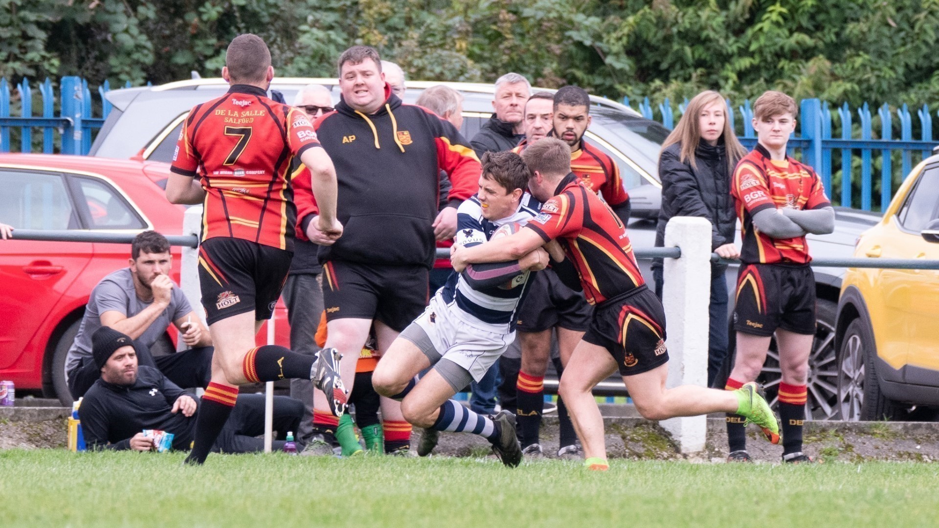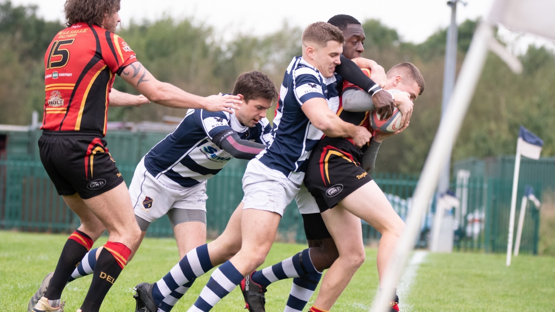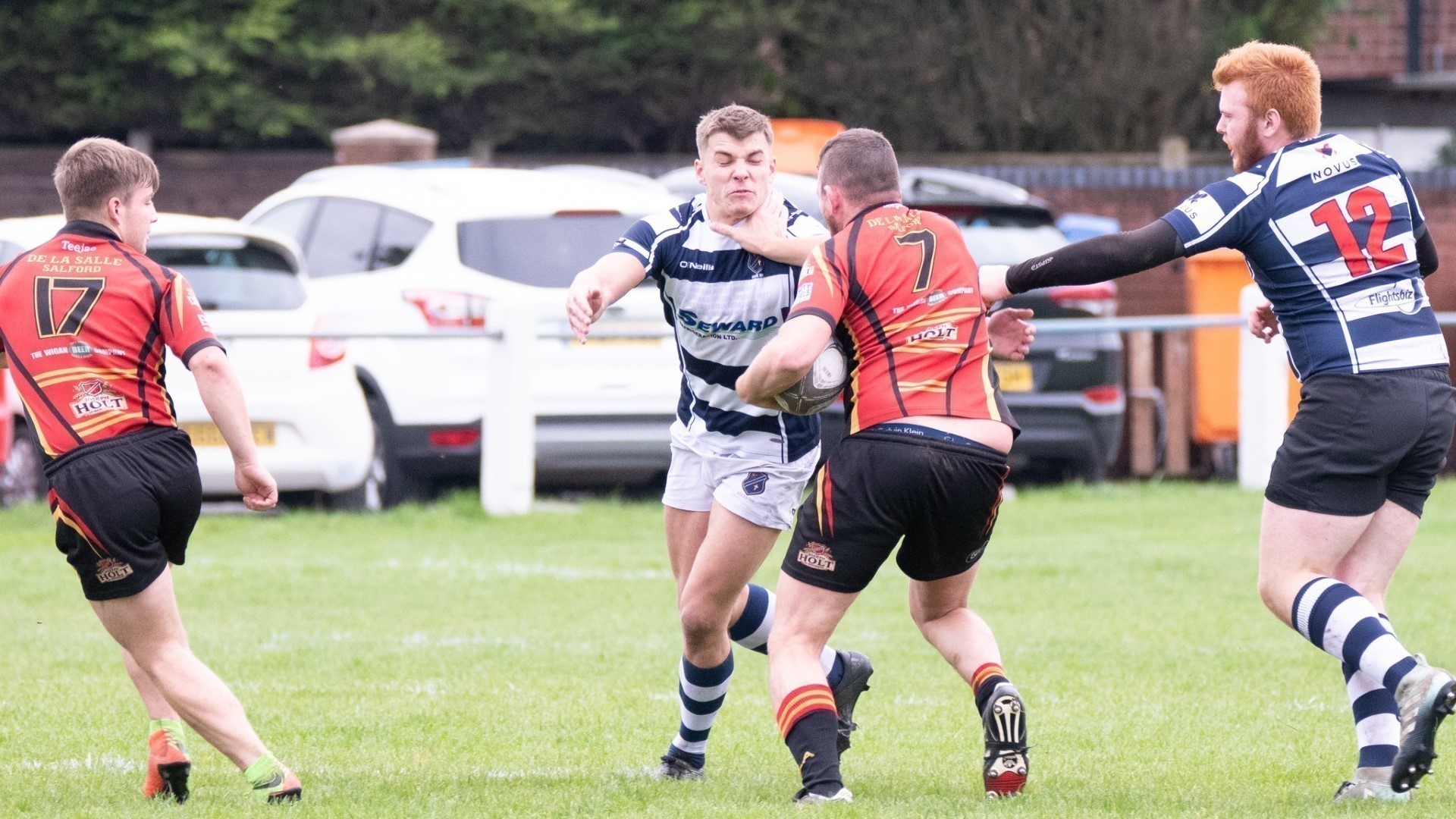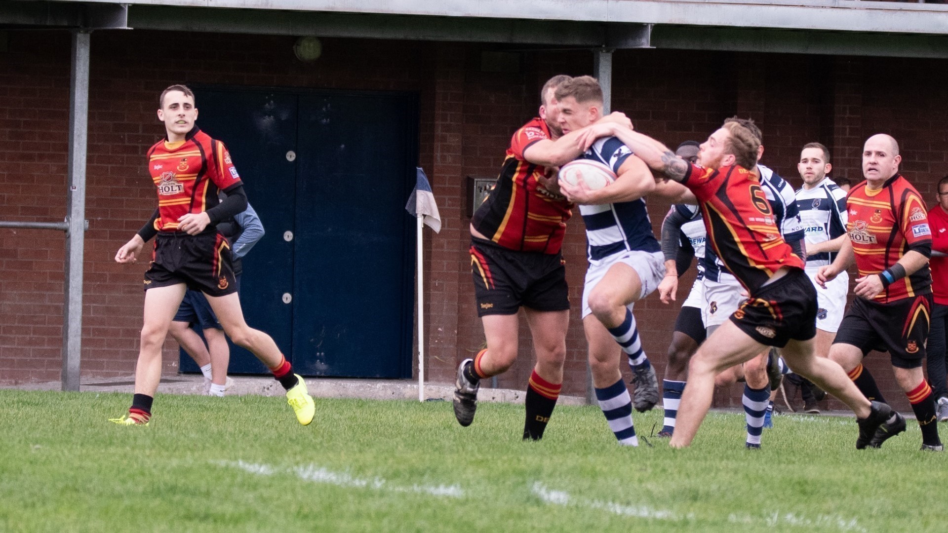 Della continued to be dominant, until a kick to the backfield collected by Chris Thomas, now on the wing, charged inside before being tackled by the Della openside adjudged by the referee to be high and dangerous and he was sent off, changing the complexion of the game.