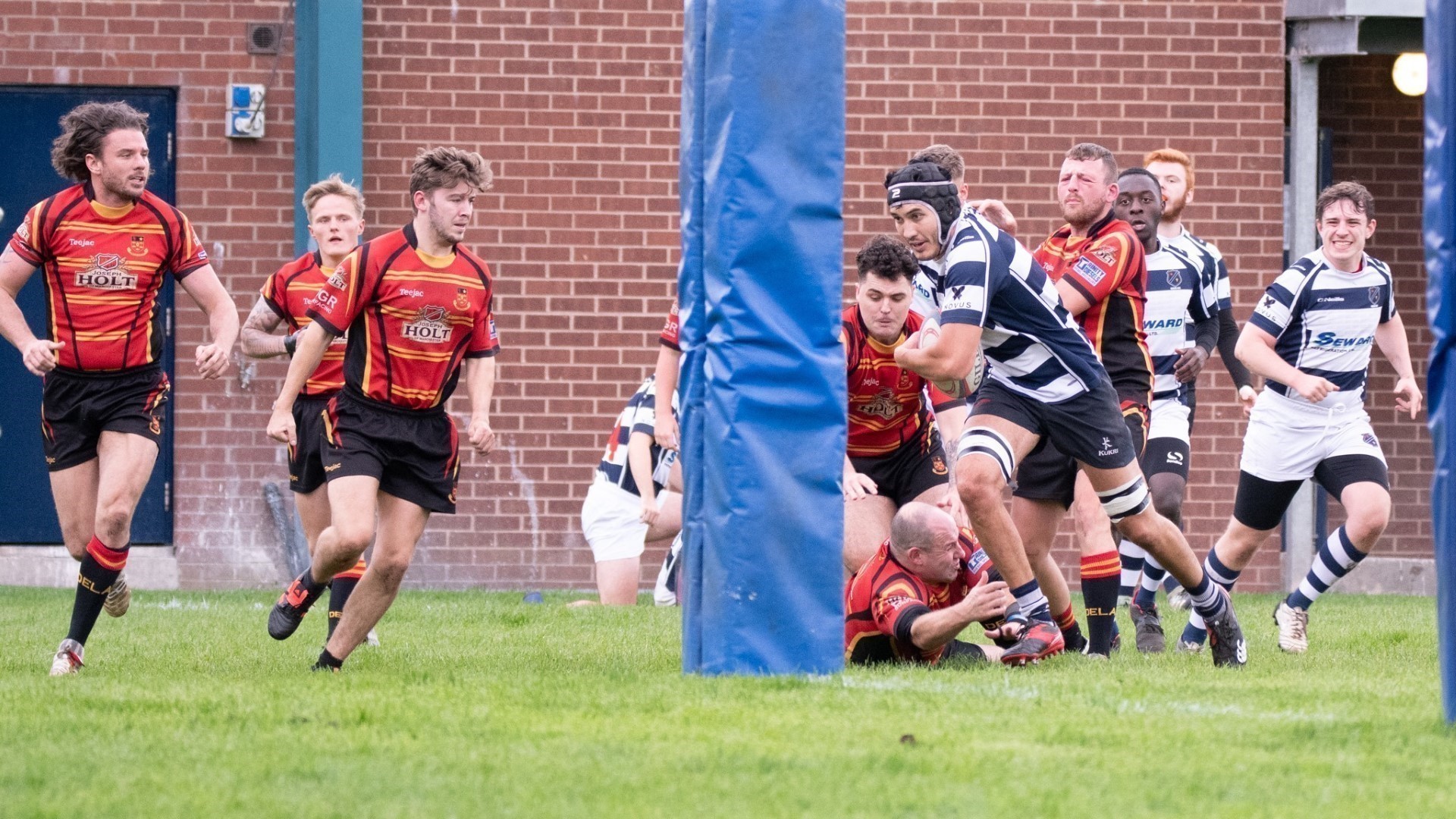 First half injuries to Freddie Oakey and Matt Hope meant that at one point there was 4 forwards in the Eccles back line with Kyle Pickford and Frosty joining Marius and Chris at wing and centre. Mat Swain, stood in the stands, recovering from injury and half way through his pint, answered the call and headed into the changing room to come to Eccles’ aid.