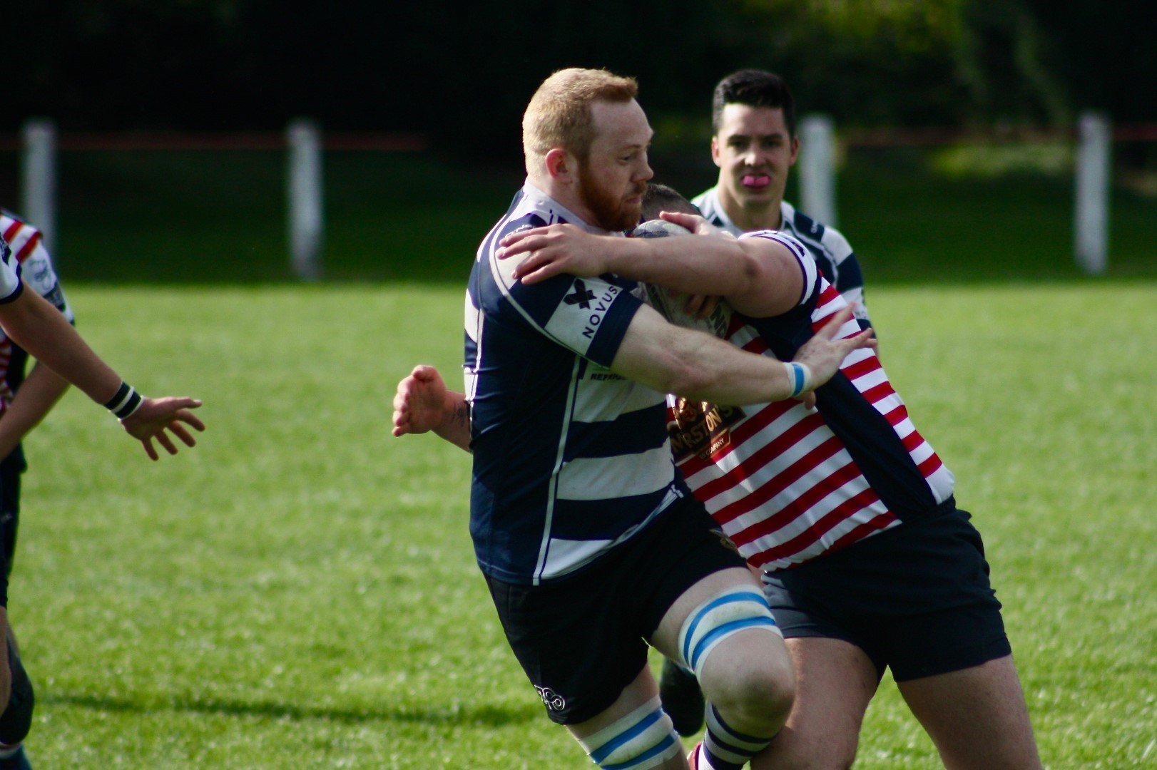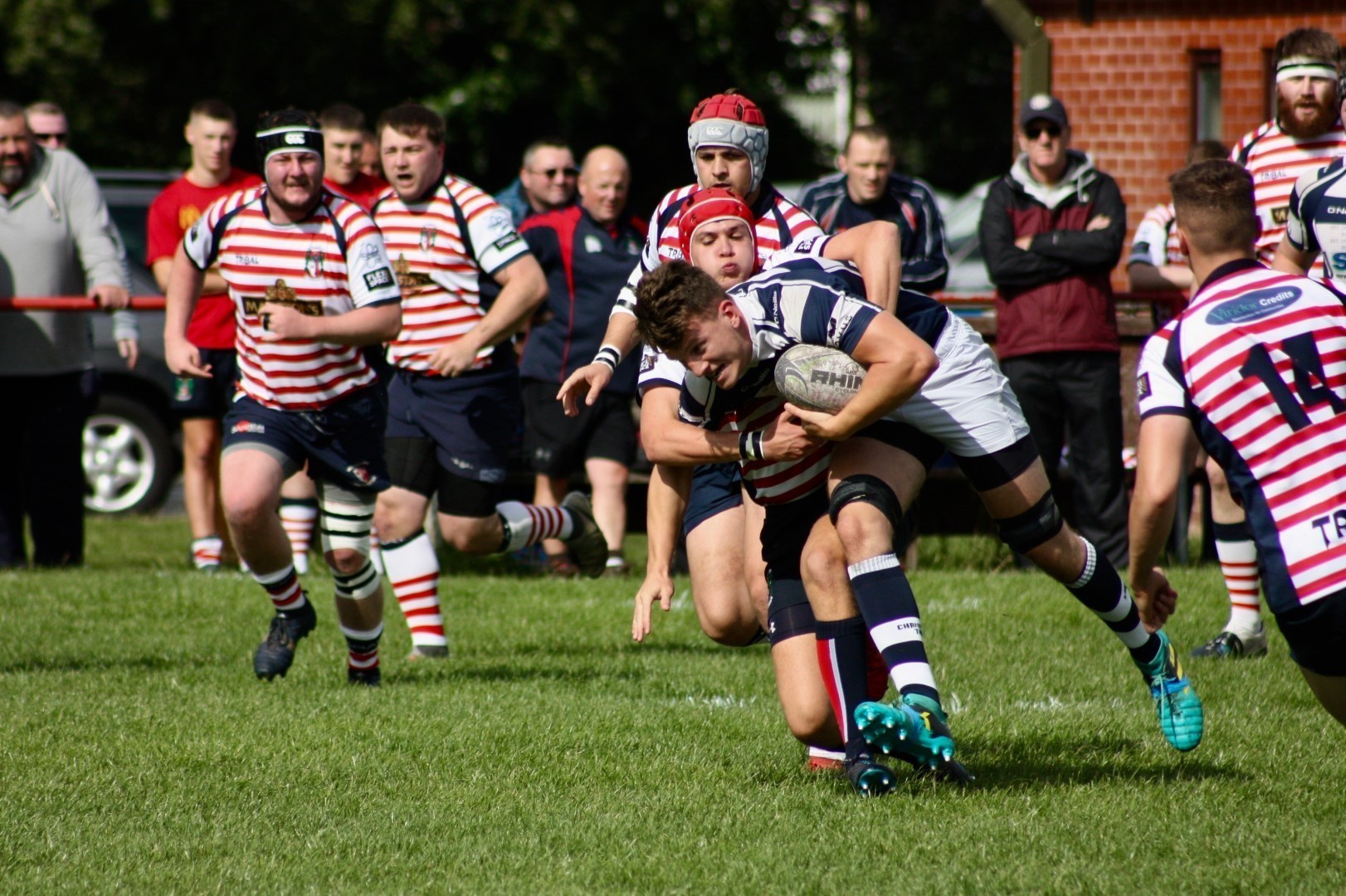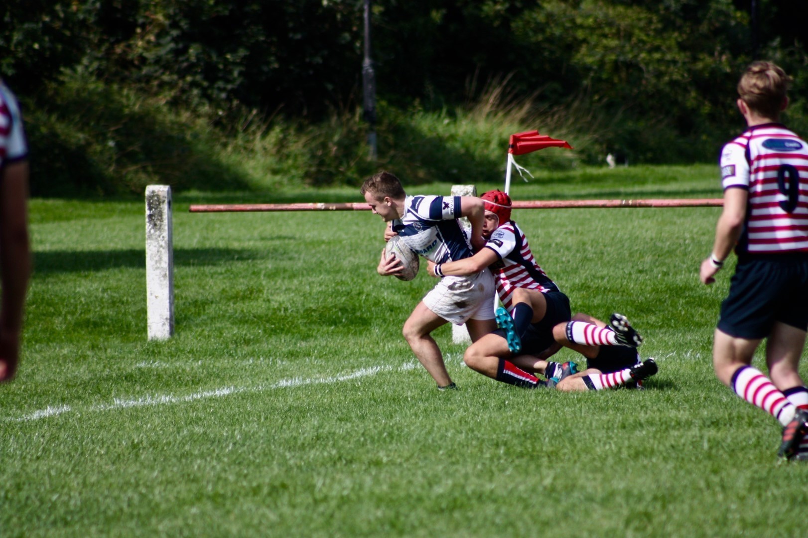 Eccles last faced Aldwinians, who now play their rugby in the Lancs ADM Premier Division, in 2017 at Level 7, and were expecting competitive test from the home team. The opening exchanges suggested the prospect of an even contest with play remaining in the middle of the pitch with both sides probing and spilling possession. Eccles were first to find their feet, winning a Penalty for ‘holding on’ following pressure at a scum on the edge of the home team 22. Chris Fortune’s foot settled the early nerves with the first points of the match and Eccles took hold of the game with assurance from this point forward, with a sequence of attacks down the flanks.