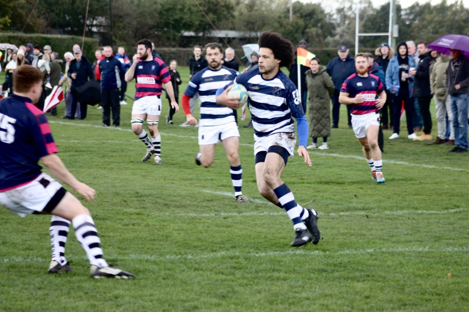 Eccles responded to this disruption in play better than the hosts and were quick to mount an attack. From the restart scrum in a midfield left position, the ball was swept right, Rayden Brice smashed through the middle and Gavin Ackers Johnson was released to race in from the wing to give Eccles the lead again, dotting down behind the posts for an easy conversion. 10-14.