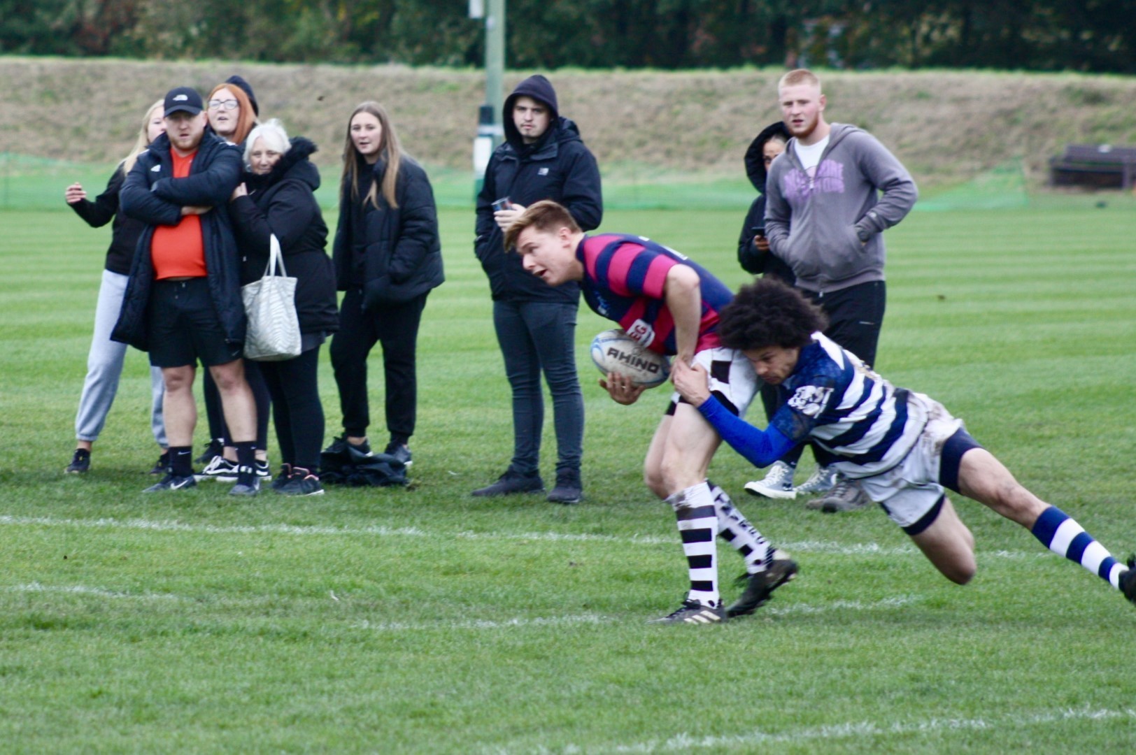 Eccles made the short journey over the River Mersey, the historic boundary between Lancashire and Cheshire, to neighbours Trafford MV on Saturday and, despite the dreary conditions at MacPherson Park, the match was end to end action with Eccles claiming the victory in the Countries 2 League fixture with two very late tries.